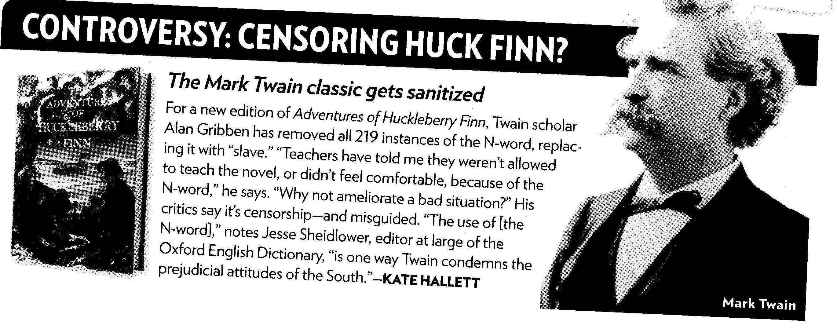My edition has no state or institutional power behind it. As Randall Williams of NewSouth Books said, “What we have done is translation, not censorship. Our translation has not deprived anyone of reading Twain’s original language, now did our translation affect the millions of copies of the work already in circulation or yet to come.” —Alan Gribben